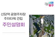 서울 중구가 신당역 주변 주차문제 해결을 위한 공영주차장 주차타워건립과 관련한 주민설명회를 오는 10월 2일 오후 2시 신당5동주민센터 3층 대회의실에서 개최한다. 설명회 포스터 이번 설명회는 주민들과 인근 상가 관계자에게 정확한 정보를 제공하고 사업의 이해도를 높이기 위한 자리로 마련됐다. ▲사업의 배경 및 목적 ▲기본구상과 효과 ▲향후 추진 일정 ▲질의응답 순으로 진행되며, 설명회에서 수렴된 주민들의 의견을 설계에 적극 반영할 예정이다. 신당역 공영주차장은 부정형의 좁은 부지에서 26면의 적은 주차면수로 27년간 운영되었으며 신당역 일대 주차수요를 감당하기에는 턱없이 부족한 실정이었다. 신당역 주변은 다가구 밀집 지역인 동시에 전통시장과 주변 상권을 찾는 젊은 층의 이동이 활발해 상시 주차수요가 많은 지역이다. 이에 주차타워건립의 필요성이 인정되어 지난 7월 서울시 투자심사와 9월 중구의회의 구유재산관리계획 심의를 통과했다. 중구에서 기계식 공영주차타워를 건립하는 것은 이번이 최초 사례로 주민설명회를 통해 주민, 상인, 생활권자 등 다양한 이해관계인의 의견을 모아 지역 여건에 맞는 합리적인 방안을 마련할 계획이다. 구는 신당5동을 시작으로 황학동 등 다른