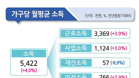 경제타임스 김재억 기자 | 2025년 4분기 우리 가계의 지갑 사정은 겉보기에 풍족해졌으나, 속을 들여다보면 고물가와 소득 격차라는 숙제가 여전한 것으로 나타났다. 가계 소득이 전년 대비 4% 증가하며 견조한 흐름을 보였지만, 실질적인 구매력 증가와 분배 지표에서는 명암이 엇갈렸다. 국가데이터처가 2월 26일 발표한 '2025년 4/4분기 가계동향조사 결과'에 따르면, 전국 1인 이상 가구의 월평균 소득은 542만2000원으로 전년 동기 대비 4.0% 증가했다. 이는 고용 시장의 견조한 흐름과 자영업 업황 개선이 반영된 결과로 풀이된다. 그러나 소비자물가 상승분을 제외한 실질 소득 증가율은 1.6%에 그쳐, 가계가 피부로 느끼는 소득 개선 효과는 지표보다 낮았다. 소득 항목별로는 가계 소득의 가장 큰 비중(62.1%)을 차지하는 근로소득이 336만9000원으로 전년보다 3.9% 늘었다. 자영업자들의 수익을 나타내는 사업소득 역시 112만4000원을 기록하며 3.0% 증가해 회복세를 이어갔다. 특히 연금과 정부 보조금 등을 포함한 이전소득은 76만6000원으로 7.9%의 높은 증가율을 기록했다. 반면, 금리 변동 등의 영향으로 재산소득은 5만7000원에 머물며 전년 대비 8.9% 감소한 모습을 보였다. 소득 수준별로 살펴보면 소득 상위 20%인 5분위 가구의 월평균 소득은 1187만7000원으로 6.1% 급증했다. 반면 하위 20%인 1분위 가구의 소득은 126만9000원으로 4.6% 증가에 그쳐, 고소득층의 소득 증가세가 전체 평균을 주도한 것으로 분석된다. 이에 따라 빈부 격차를 나타내는 '균등화 처분가능소득 5분위 배율'은 5.59배를 기록, 전년 동기(5.28배)보다 높아지며 소득 양극화가 심화된 것으로 나타났다. 소득은 늘었지만 가계가 마음대로 쓸 수 있는 돈인 '처분가능소득'은 434만9000원으로 3.4% 증가하는 데 그쳤다. 이는 조세, 사회보험료, 이자 비용 등을 포함한 비소비지출이 107만3000원으로 무려 6.5%나 늘어났기 때문이다. 특히 가구 간 이전지출(22.7%)과 경상조세(11.5%)의 증가가 가계 지출 부담을 키우는 주요 원인이 됐다. 이번 가계동향 조사는 전반적인 고용과 생산 활동을 통해 명목 소득이 성장하고 있음을 보여준다. 하지만 증가한 소득의 상당 부분이 비소비지출과 고물가에 상쇄되고 있다는 점은 우려스러운 대목이다. 또한, 상위 5분위 소득 증가율이 하위 분위보다 월등히 높아 자산 및 소득 불균형이 다시 확대되는 양상을 보이고 있다. 내수 활성화를 위해서는 소득 하위 가구의 실질 구매력을 보강하고, 비소비지출 부담을 완화하기 위한 정책적 고려가 수반되어야 할 것으로 보인다.