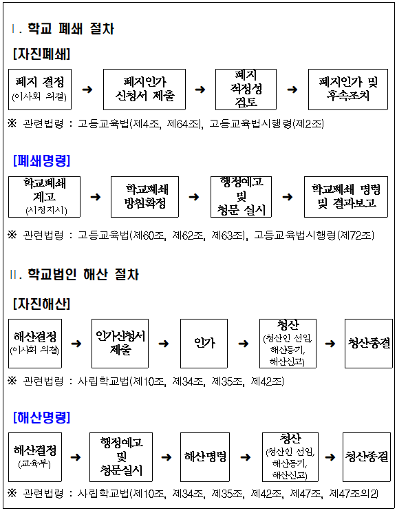 교육부는 작년 12월 13일 서남대를 고등교육법 제62조에 따른 ‘정상적인 학사운영이 불가능한 학교’로 보아 폐교명령을 했고, 아울러 서남대만을 운영하던 서남학원에 대해 ‘목적달성 불가능’을 이유로 사립학교법 제47조에 따라 해산명령을 했다.