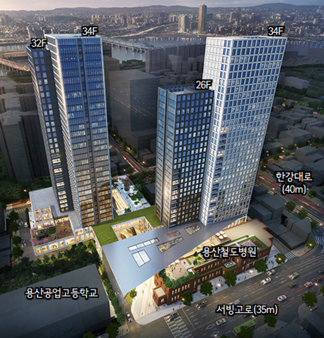 용산 철도병원 부지에 공동주택 685세대가 들어선다. 건물 저층부에는 박물관과 문화시설이 신설될 예정이다.