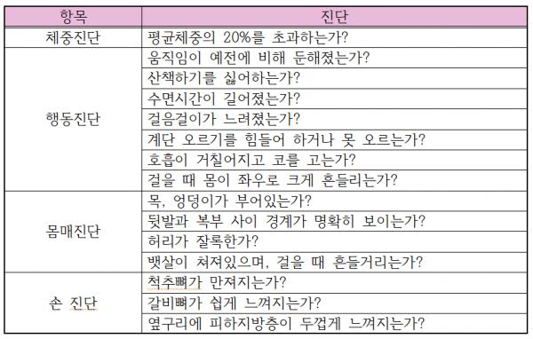 ▲ 반려견 비만 진단 점검표