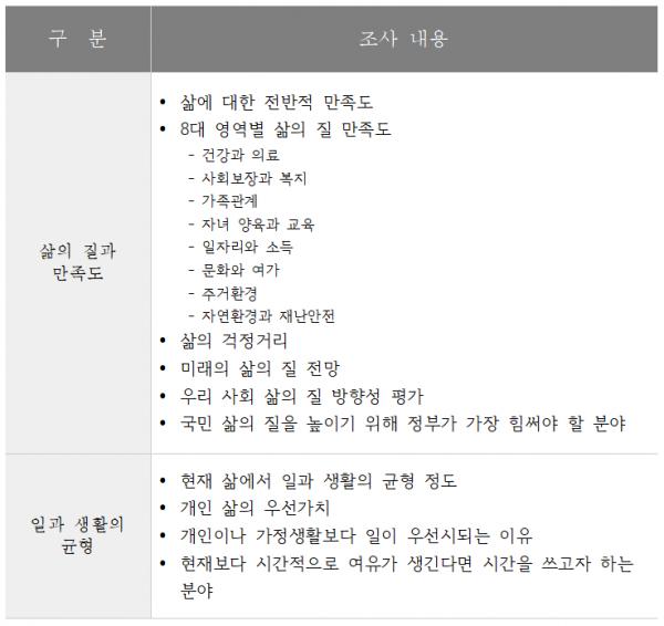 조사 결과가 삶의 질 정책의 기초자료로 활용될 수 있도록 관련 부처와 공유하고, 앞으로 매년 동일한 문항으로 조사해 국민들의 요구를 지속적으로 파악할 계획이다.”라고 밝혔다.