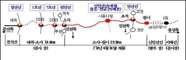 소사∼원시선은 부천 소사역을 출발하여, 시흥시청역을 지나, 안산원시역까지 23.3㎞ 구간 정거장 12개소를 지나며,‘11년 4월 착공 이후 7년 2개월간의 건설공사, 시설물 안전검증 및 영업시운전 등을 거쳐 16일부터 영업을 시작할 예정이다.