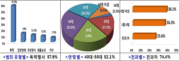 조직폭력배 단속 결과는 작년 특별단속 대비 검거인원은 작년과 동일하나, 구속인원은 22.1% 증가하였으며 특히 경기북부청 광역수사대와 강원청 광역수사대가 공조하여 춘천지역 토착폭력배를 통합하고 보도방 등 각종 이권사업을 독점하며 조직 운영자금 마련을 위해 불법도박사이트를 운영한 파 두목 등 93명을 검거한 사건과 경남청 광역수사대에서 경남 양산지역 조직폭력배들을 규합해 보도방 등 이권을 장악한 파 95명을 검거한 사례와 같이 지역 잔존 조직원을 새로 규합하는 등 그 간 밝혀지지 않았던 조직폭력배에 대해 면밀하고 입체적인 수사로 실체를 규명하고 두목부터 조직원까지 엄단했다.