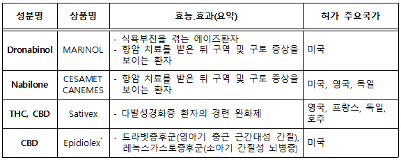 식품의약품안전처는 국내에 대체치료수단이 없는 뇌전증 등 희귀·난치 환자들에게 해외에서 허가된 ‘대마’ 성분 의약품을 자가 치료용으로 수입하여 사용할 수 있는 방안을 추진한다고 밝혔다.