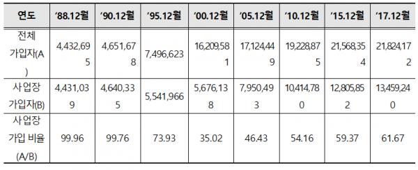 그동안 일반일용근로자가 월 8일 이상 근로할 경우 사업장 가입대상이 되는 것과 달리, 건설일용근로자는 월 20일 이상 근로를 해야 사업장 가입대상이 되어 국민연금 사각지대에 있는 문제가 지속적으로 제기되어 왔다.