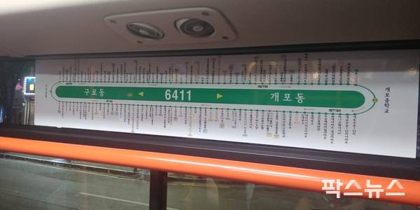 “6411번 버스라고 있습니다. 서울시 구로구 가로수 공원에서 출발해서 강남을 거쳐서 개포동 주공 2단지까지 대략 2시간 정도 걸리는 노선버스입니다.