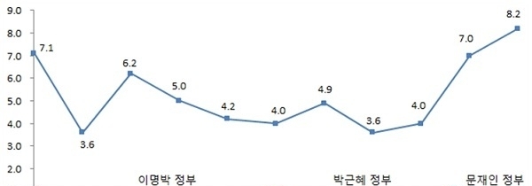 8.2%의 국방예산 증가율은 과거 정부의 국방예산 편성을 고려할 때 획기적 확대이며, 지난 2008년 이래 최고 수준의 증가율로 2010년부터 2017년까지의 평균 증가율 4.4%의 거의 2배에 해당한다.