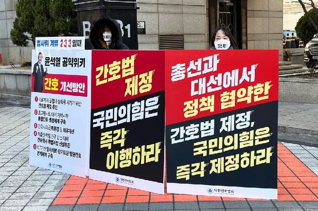 이어 신 회장은 “국민의힘은 선거 전과 후가 다른 정당이냐, 국민과의 약속을 저버리는 신뢰할 수 없는 정당이냐”고 물은 뒤 “간호법은 건강한 대한민국을 만들기 위해 국민 요구에 부응한 법안으로, 국민의힘은 즉각 간호법 제정에 나서야 한다”고 주장했다.