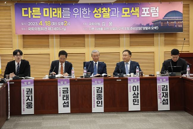 더불어민주당과 국민의힘에서 모두 비상대책위원장을 지낸 김종인 전 위원장은 18일 국회 의원회관에서 열린 ‘다른 미래를 위한 성찰과 모색 포럼’의 첫 토론회에 좌장으로 참석해 이같이 언급했다.