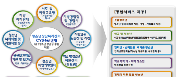 지역사회 청소년통합지원체계(CYS-Net) (자료=여성가족부) 23일 여성가족부는 ’지역사회청소년통합지원체계(CYS-Net)’의 필수연계기관으로 ‘보호관찰소’를 추가하는 내용을 담은 ‘청소년복지 지원법 시행령 일부개정안’이 10월 23일 국무회의 심의·의결을 통과했다고 밝혔다.