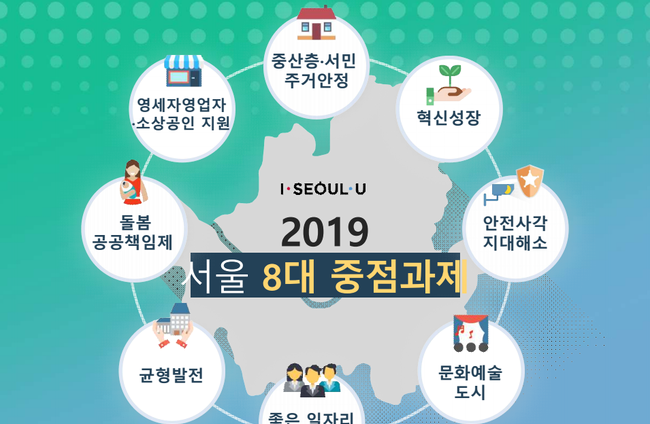 서울시는 실무부서와 분야별 전문가 자문, 실‧본부‧국장 및 시장단 등 논의를 거치고 시민 의견을 수렴해 마련한 ‘2019년 서울시 민생우선 예산(안)’을 11월1일(목) 이와 같이 발표하고, 이중 중점적으로 투자할 8대 분야를 소개했다.