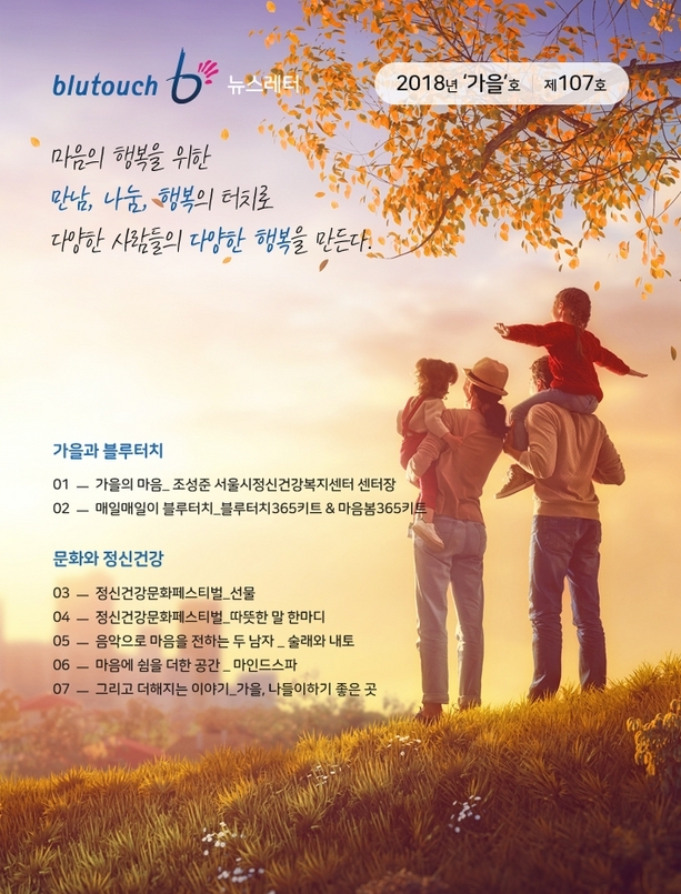 서울시정신건강복지센터 가을호 뉴스레터 표지 서울시에서는 정신장애인의 지역사회 적응 및 자립생활 함양을 위하여 지역사회전환시설, 공동생활가정, 자립생활형공동생활가정 등의 시설 운영체계 마련과 시범사업을 선도적으로 추진하고 있다.