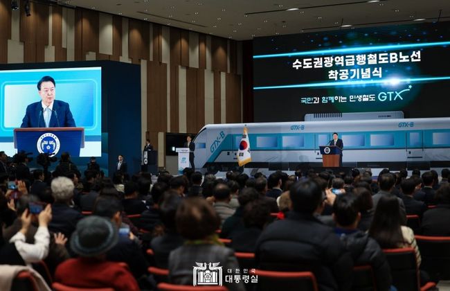 GTX B노선은 일찍이 2011년 국가철도망 계획에 반영됐지만 10년 넘게 첫 삽조차 뜨지 못했던 사업이다. 그러나 대통령이 작년 1월 GTX B노선 사업의 본격 추진을 선언한 이후 우리 정부가 60회 이상 집행전략회의를 열고 설계와 협상을 동시에 진행하는 패스트트랙 방식을 도입한 끝에 오늘의 역사적인 착공식을 열게 되었다.