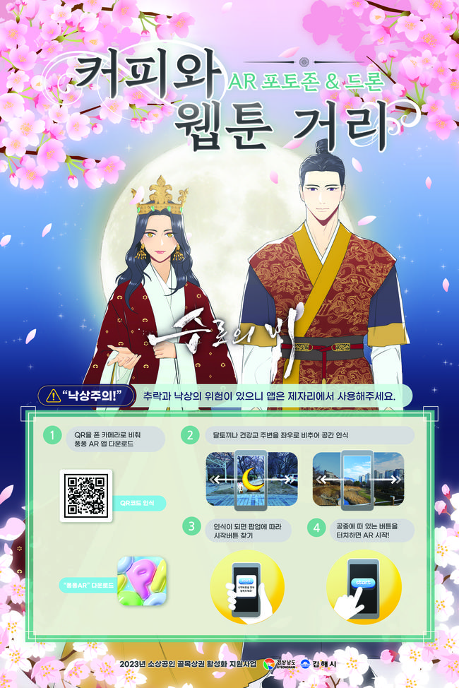 시는 ▲카페거리 게시판 리뉴얼 ▲웹툰 포토존 설치 ▲웹툰 AR 드론쇼 등 3개 세부 사업을 지난 3개월 동안 해왔다. 특히 증강현실(AR)앱을 활용해 특정 장소를 비추면 귀여운 캐릭터와 노래가 현실 세계와 어울려 즐거움을 선사한다.
