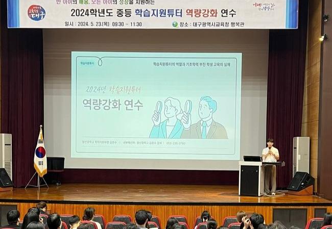 한편, 대구시교육청은 학습지원튜터의 원활한 활동을 지원하기 위해 지난 5월 23일(목) 시교육청 행복관에서 중등 학습지원튜터 184명을 대상으로 튜터 역량 강화 연수를 실시했으며, ▲학습지원튜터의 역할과 학생 교육의 이해, ▲튜터 생활 노하우 공유, ▲학습지원자료 활용 안내 등의 내용으로 진행됐다.