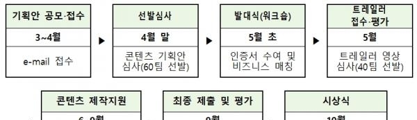 1차 선발 60개 팀이 기획·제작한 콘텐츠를 평가해 선발된 40개 팀을 대상으로 팀당 최대 250만원의 제작비를 지원하고, 제작지원작 평가를 통해 최종 4개 팀을 선정해 과기정통부 장관상장과 총 600만원의 상금을 수여할 예정이다.