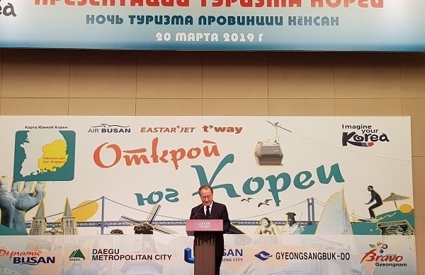 이석배 주블라디보스토크 총영사가 축사를 하고 있다 이 캠페인은 작년 러시아 극동 지역과 경상도 지역간 에어부산, 이스타항공, 티웨이항공이 신규 취항함에 따라 경상권을 새로운 관광목적지로 부각시키려는 집중 마케팅의 하나로 마련됐다. 캠페인의 시작은 3월20일 블라디보스토크, 3월22일 하바롭스크에서 현지 여행사 관계자 90여 명과 한국의 여행사, 지자체, 항공사 관계자 50여 명이 참가하는 방한관광상품 개발 설명회 및 ‘경상관광의 밤’ 행사부터다. 이어 4월부터는 경상권 방문 러시아 관광객 대상 트래블킷 제공, 극동 언론매체 경상관광 홍보 팸투어, 여행사 경상관광상품 개발 팸투어를 추진한다. 또한 경상관광 홍보 및 특별 광고, 극동지역 주요도시의 경상권 개별관광 설명회, 여행사 경상관광상품 모객·판촉 특별 지원, 경상관광 관련 온라인 이벤트, 러시아 한국관광홍보 SNS 기자단 ‘쁘리벳 코리아’의 경상권 집중 방문 취재 등이 차례로 펼쳐진다. 아울러 5월~8월 기간 동안은 경상권 방문 러시아관광객에 대해 주요 관광지 특별할인 혜택도 제공된다. 2014년 한-러 양국간 비자면제 협정 발효 후 지난해 방한 러시아관광객은 사상 최초로 30만을 돌파하는 등 성장세를 이어가고 있다. 극동시장에서의 지방관광 홍보캠페인에 집중해 온 공사는 올해 경상관광 캠페인에 이어 내년에는 전라관광 캠페인을 추진할 계획이다.