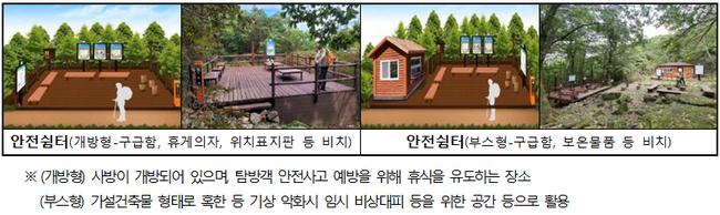 국립공원 내 스마트자동심장충격기 현황 국립공원공단은 심정지, 낙상사고 사고 예방을 위해 10년간 국립공원에서 발생한 안전사고 통계 정보 등을 바탕으로 주요거점에 스마트 자동심장충격기를 설치하고 있으며 안전쉼터, 위험 안내시설 등도 지속적으로 늘려가고 있다.