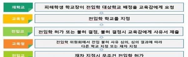 전입학 불허시, 전입대상 학교장은 그 사유를 교육감에게 제출해야 하고, 교육감은 “교육청 전입학위원회”를 개최해 불허 사유를 심의하게 해, 사유가 타당한 경우 다른 학교로 배정하고, 그렇지 않을 경우 대상학교장은 전입학을 허가해야 한다.