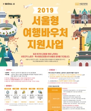 올해 처음으로 시행하는 ‘2019 서울형 여행 바우처 지원 사업’은 비교적 휴가 여건이 열악한 노동자들에게 여가 활동의 기회를 제공해, 누구나 여가를 즐길 수 있는 문화를 정착시키기 위해 추진됐다.. 뿐만 아니라, 국내여행을 계획하고 관련 상품을 구매하도록 함으로써 국내여행 활성화에도 기여할 계획이다.