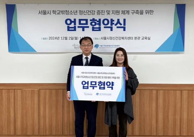 서울시정신건강복지센터(서울시 종로구 소재)는 지난 12월 2일 서울시학교밖청소년지원센터(서울시 동작구 소재)와 서울시 학교 밖 청소년의 정신건강 증진 및 지원을 위한 업무협약을 체결했다고 밝혔다.