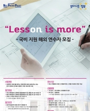 아울러, 국토교통부는 사업이 지속적으로 확대될 수 있도록 사업 시행기관인 국토교통과학기술진흥원과 함께 해외 유수의 설계사무소에 국내 건축인들을 위한 별도의 연수 자리를 미리 확보하기 위한 노력도 병행할 계획이다.