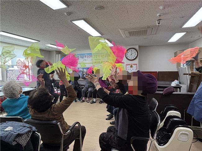 기존 프로그램이 단체 게임 위주로 구성돼 연로하거나 거동이 불편한 어르신이 참여하기 어려웠다면 경로당 실버놀샘터 프로그램은 스카프, 솜털공, 아이스크림콘 등 간단한 소도구를 활용해 누구나 쉽게 참여할 수 있도록 구성된 것이 특징이다.