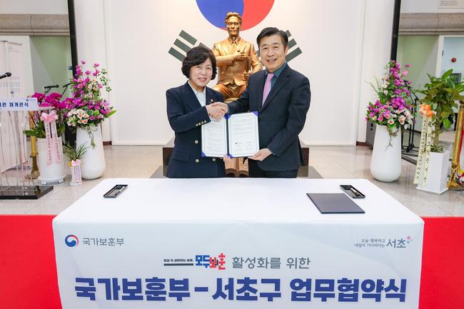이번 업무협약을 통해 서초구와 국가보훈부는 국가유공자 예우 강화, 보훈문화교육 활성화, 주민 참여형 보훈 장려 분야에서 추진하는 사업들에 대해 상호 협력해 나갈 예정이다.
