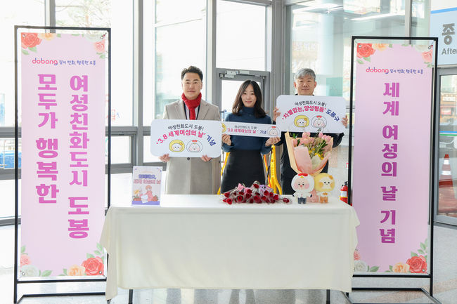 한편 구는 지난 3월 7일 세계여성의 날(3월 8일)을 맞아 도봉구청 1층에서 캠페인을 실시했다. 캠페인은 세계여성의 날의 의미를 되새기고 직장 내 양성평등 문화를 확산하고자 마련됐다. 이날 오언석 구청장과 직원들은 캠페인을 통해 서로의 권리를 존중하고 지지하는 문화를 만들어 나갈 것을 다짐했다.