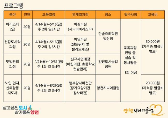 올인원 맞춤형 일자리 프로그램은 취업을 희망하는 60세 이상 양천구민이면 누구나 참여할 수 있으며, 3월 31일까지 양천시니어클럽을 방문해 신청하면 된다.