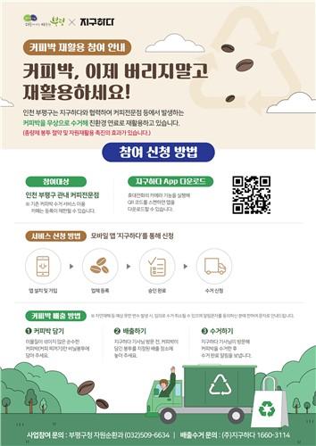 부평구(구청장 차준택)는 스마트폰을 활용해 지역 내 커피전문점에서 발생하는 커피박(커피찌꺼기)을 재활용하는 통합 처리 시스템을 구축했다고 31일 밝혔다.