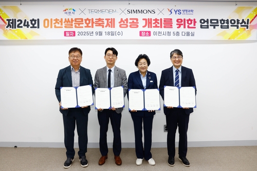 경제타임스 기수완(인턴) 기자 | 이천쌀문화축제추진위원회(위원장 김경희)는 18일 테르메덴, 시몬스, YS생명과학과 업무협약을 체결했다고 이날 밝혔다.