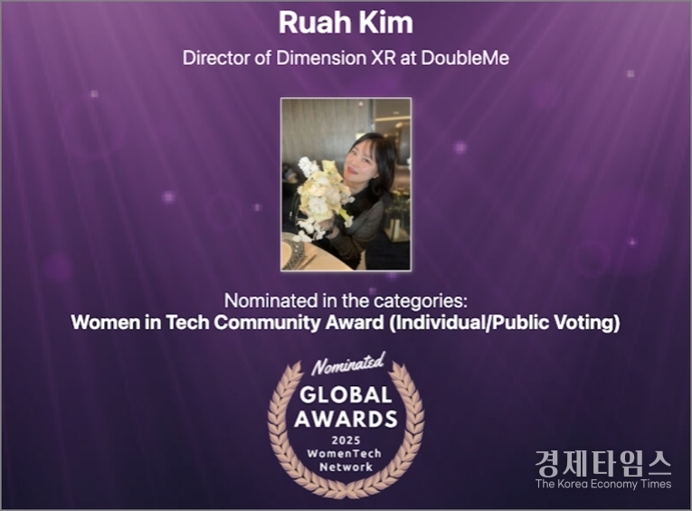 XR·AI 기술기업 더블미(DoubleMe)의 김은후 이사가 글로벌 여성 기술 네트워크 ‘WomenTech Global Awards 2025’에서 Women in Tech Community Award 부문 후보로 공식 선정됐다.