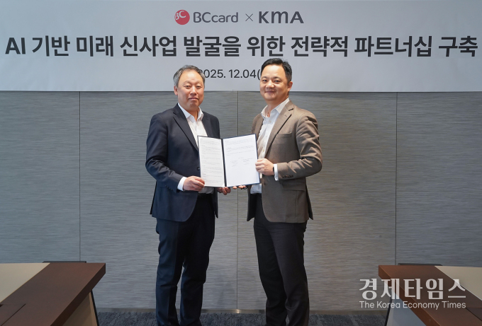 지난 4일 오후 서울 중구 소재 BC카드 본사에서 진행된 협약식에는 오성수 BC카드 상무, 강석 KMA AI 역량개발본부장 등 양사 주요 관계자들이 참석했다.