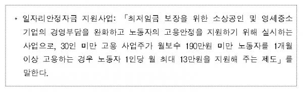 또한, 공단은 10인 미만 사업장에서 190만원 미만의 급여를 지급받는 노동자와 사업주에게 고용보험과 국민연금 보험료를 최대 90%까지 지원하는‘두루누리 사회보험 지원사업‘도 수행하고 있어 일자리안정자금 지원사업과의 병행을 통해 소규모 사업장의 사회보험료 부담액 경감이 사회보험 가입확대로 이어지는 시너지 효과를 거둘 수 있을 것으로 기대하고 있다.