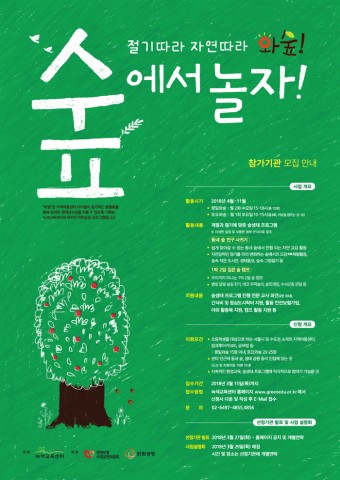 참가를 원하는 기관은 녹색교육센터 홈페이지에서 세부안내문 및 참가신청서를 다운받아 3월 15일(목)까지 이메일로 접수하면 된다. 평일와숲 4개 기관과 토요와숲 3개 기관 등 총 7개 기관이 선정되며 최종 참가기관은 3월 27일(화)에 발표할 예정이다.