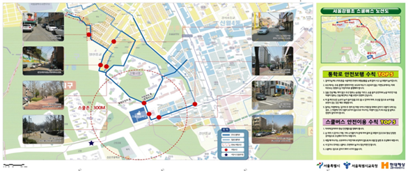 서울시와 현대해상은 스쿨버스 운영학교 중 희망하는 학교에 어린이 교통사고 예방을 위한 ‘통학로 안전지도’를 제작해 배포하고 ‘찾아가는 안전체험교실’도 운영하기로 했다.