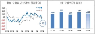 2025년 1월 수출 10.3% 감소…무역수지 19억 달러 적자