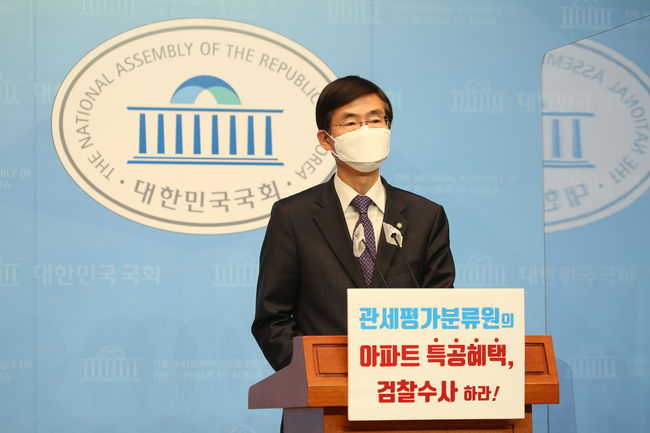 국민의힘 조경태 의원이 20일 기자회견을 통해 관세평가분류원 아파트 특공혜택에 관해 검찰수사가 진행돼야 한다고 주장했다. 20일 국민의힘 당 대표 후보 조경태 의원(부산 사하을, 5선)이 "세종시 이전 계획도 없던 관세평가분류원(이하 관평원)의 청사를 171억원의 예산으로 지어놓고 1년째 유령건물로 방치하고 있다"며 관평원 세종시 특별공급 관련 검찰수사를 진행해 일벌백계해야 한다고 촉구했다.