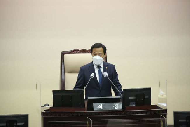 장현국 의장이 제352회 정례회 1차 본회의를 주재하고 있다. 제352회 정례회 1차 본회의에 참석한 이재명 경기도지사.