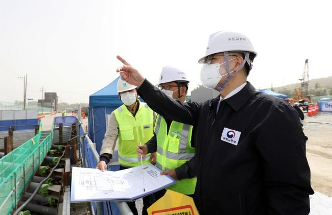 윤성원 국토부 1차관은 23일 천안시 아파트 건설현장을 방문해 방역실태를 점검했다. 사진은 5월 7일 건설현장 방문 당시 (사진=국토교통부) 윤 차관은 코로나19 예방조치 및 현장 안전관리 현황 등을 보고받은 뒤, "최근 전국적으로 폭염이 지속되는 가운데 햇빛에 장시간 노출이 되는 건설 근로자들의 건강과 안전을 최우선으로 고려 하도록 현장관리에 힘써줄 것"을 당부했다