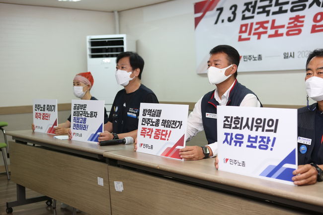 민주노총은 "코로나19 감염의 주된 경로는 실내 밀집 생활 감염"이라며 "감염 가능성이 현저하게 낮은 야외 집회 등에 대한 과도한 제한이 아닌 실질적으로 실효적인 방역 대책으로의 전환을 요구한다"고 강조했다.