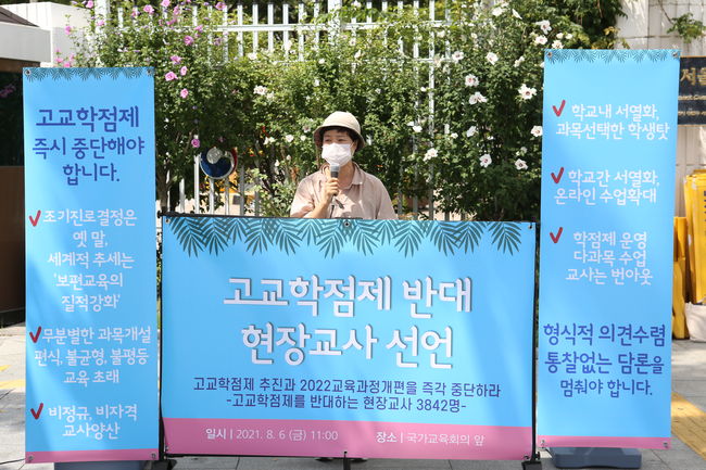 고교학점제 반대 현장교사 선언자 모임은 6일 오전 서울 종로구 정부서울청사 앞에서 `고교학점제 반대` 기자회견을 실시했다.