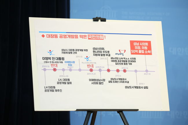 아울러 그는 "화천대유가 돈을 줬다고 하는 명단에 성남시의회 의장, 성남시의원이 들어갔다"며 "이에 대해 검찰과 경찰은 즉각 수사해야 한다"고 촉구했다.
