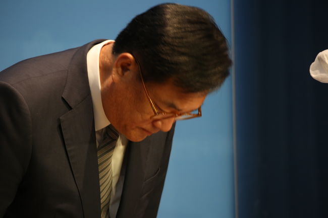 고개숙인 정진석... 정 부의장은 `(비대위원장직이) 축배가 아닌 독배여서 더 이상 피해선 안 된다고 생각했다`고 언급했다. 정진석 국회부의장은 비대위원장직을 수락하며 “할 수만 있다면 지난 몇 달 간의 당 내분과 분열상을 지우개로 지우고 싶은 심정으로 당내 혼란에 대해 당원과 국민께 죄송하다”며 “윤석열 정부가 혼신의 힘을 다해 일할 수 있도록 집권여당부터 정신 차리고 당을 신속히 정비하겠다”고 말했다.