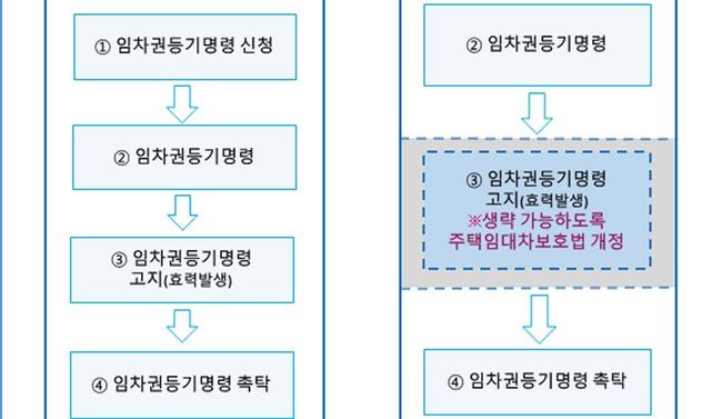 이에 개정안은 `주택임대차보호법`의 임차권등기명령 조항(제3조의3 제3항)의 준용규정에 ‘가압류 집행은 채무자에게 재판을 송달하기 전에도 할 수 있다’는 `민사집행법` 제292조 제3항을 추가하여, 임대인에게 임차권등기명령 결정이 고지되기 전에도 임차권등기가 이루어질 수 있도록 했다.