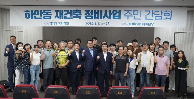 더불어민주당 양기대 의원(경기광명을)은 지난 2일 경기도 광명시 평생학습원에서 주민 150여 명이 참석한 가운데 ‘하안동 재건축 정비사업 주민간담회’를 개최했다고 4일 밝혔다.
