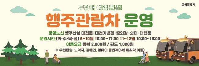 고양시는 오는 6월 4일부터 행주산성 대첩문에서 충의정 정상까지 약 800m 구간을 운행하는 행주관람차 운영을 시작한다고 밝혔다.