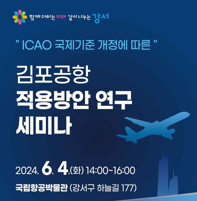 구는 6월 4일 오후 2시 국립항공박물관에서 ‘국제민간항공기구(ICAO) 국제기준 개정에 따른 김포공항 적용방안 연구 세미나’를 개최한다고 밝혔다.